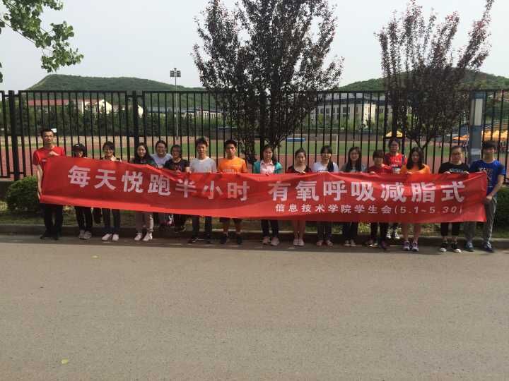 2016年5月1日,南京中医药大学信息技术学院发起了面向全院师生的为期一个月的跑步活动,本次活动以“每天悦跑半小时,有氧减脂健康式”为主题,旨在调动我院学生锻炼身体的积极性,用跑步来倡导健康的生活方式。