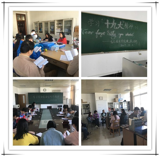 11月1日下午2点,信息技术学院党总支4个党支部以支部为单位,精心组织全体师生党员认真学习贯彻党的十九大精神,并做好相关记录。
