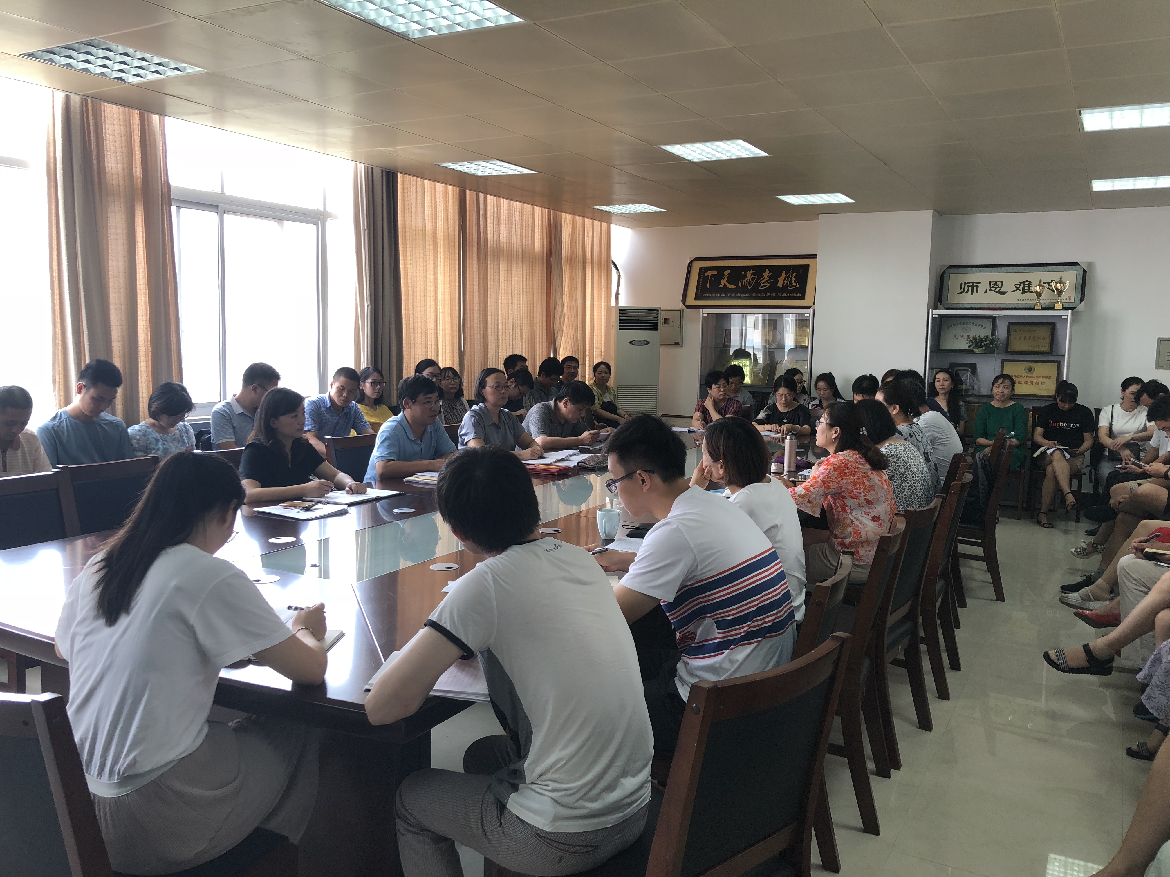 蔡爱华书记首先向大家介绍了我院2018级新生的录取情况及新生班级的学业导师、辅导员安排。之后小结了暑期前后的工作:“习近平新时代中国特色社会主义思想知识竞赛”活动如期完成,学院党员100%参与,超过2/3的党员得到满分;暑期社会实践活动顺利开展、圆满完成。此前,我院党总支获评“校先进基层党组织”,教工第一党支部书记龚庆悦老师获评“党支部书记年度人物”,印志鸿、周作建、高桂春等3位党员获评“校级优秀共产党员”。向他们表示祝贺的同时,蔡书记也希望全体教师能向他们学习,共同进步。最后,蔡书记向全体教职工转达了本周三、周四暑期干部培训班的会议精神,带领大家学习了习近平总书记5月2日在北京大学师生座谈会上重要讲话精神,坚持“以本为本”,推进“四个回归”,加快建设高水平本科教育、全面提高人才培养能力,造就堪当民族复兴大任的时代新人。