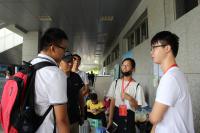 迎新工作如火如荼,到处都是忙碌的身影。体育馆前整齐坐落的服务咨询站点和各具特色的众多的贴心服务标语、小工件。虽然烈日当空,但是在站点服务的志愿者们始终面带微笑耐心地回答新生与新生家长的提问并耐心讲解学校情况,报到内场的志愿者则是帮新生提行李、处理入学手续。