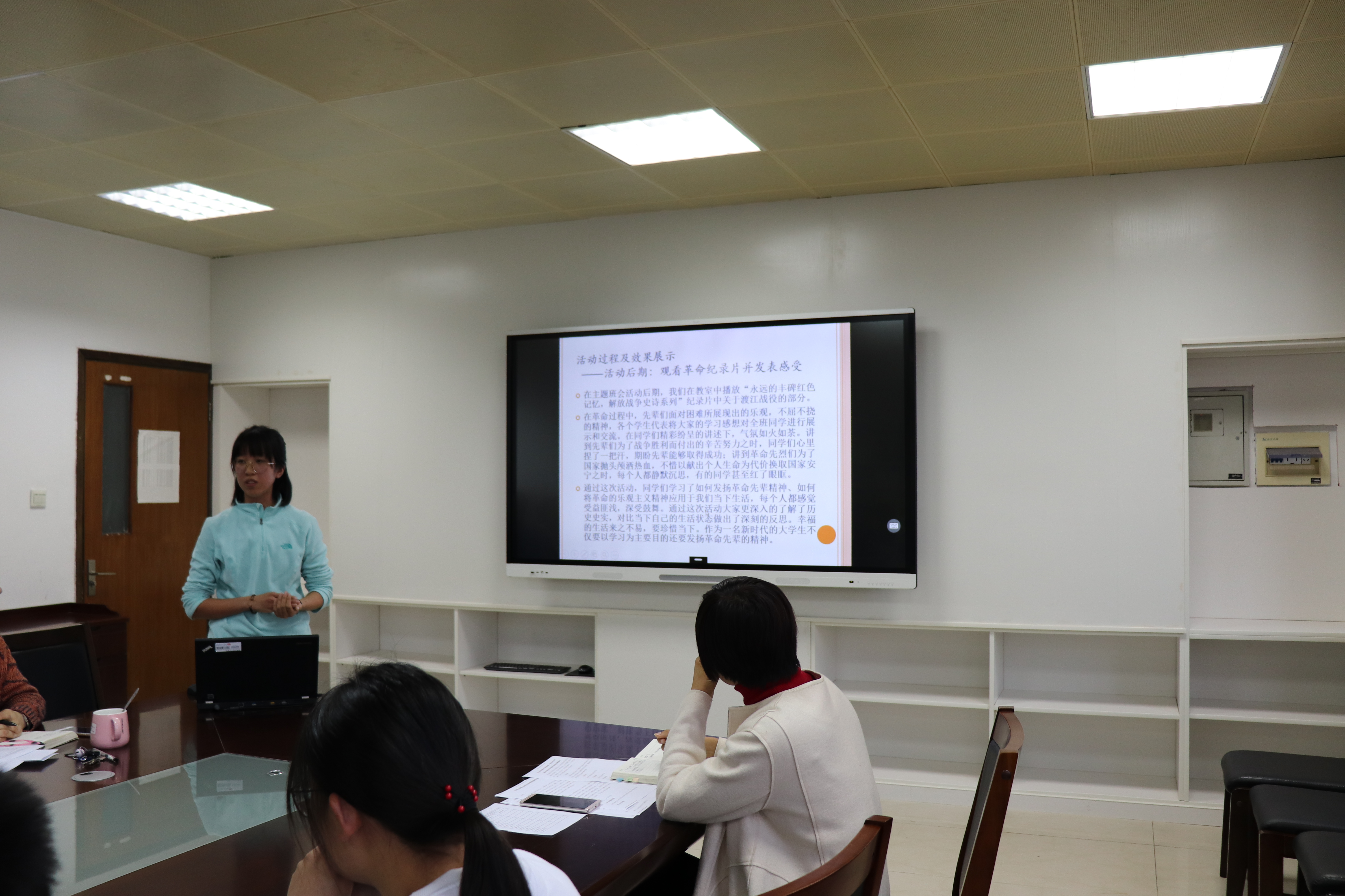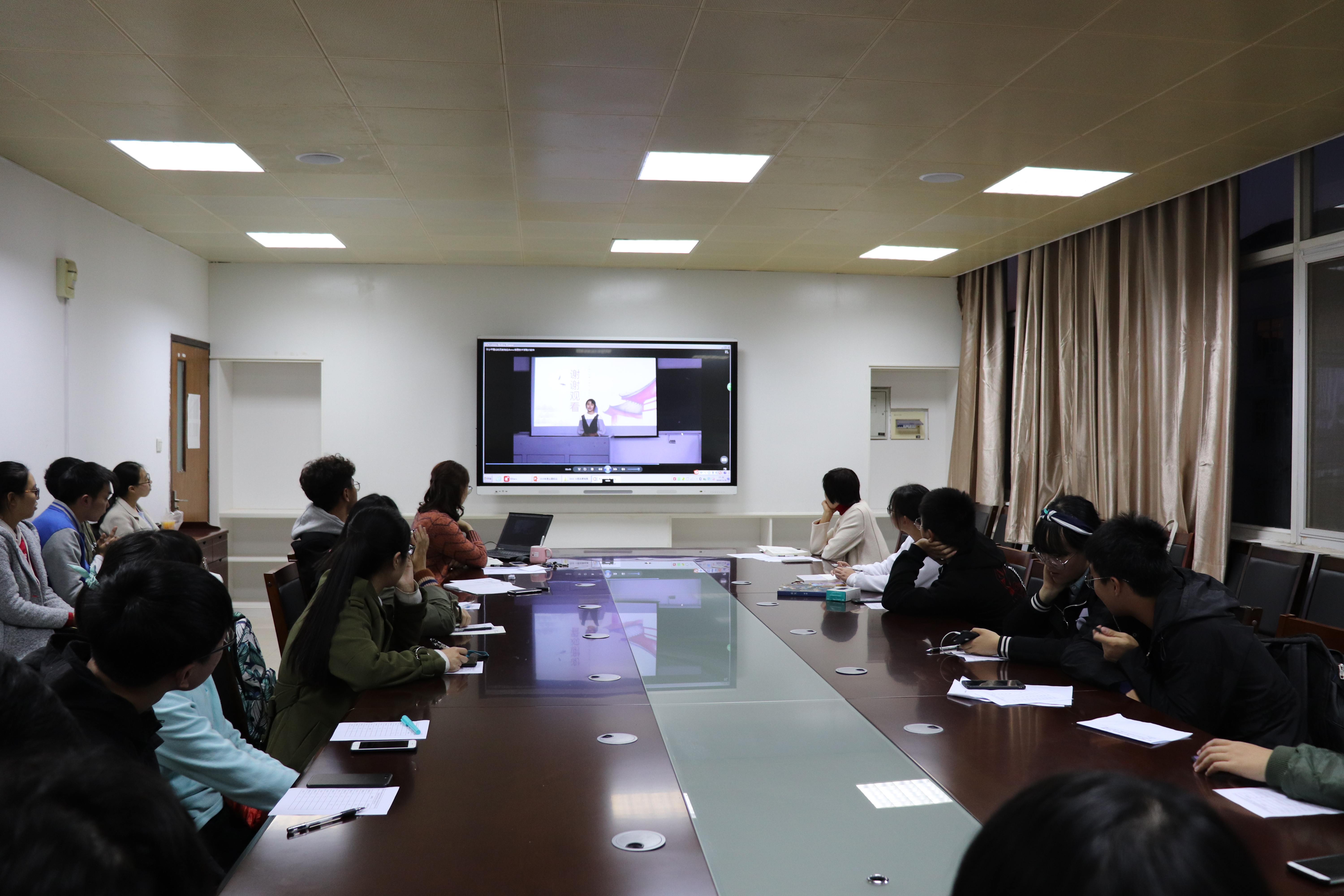 接着,刘老师为大家播放了各班讲思政课的视频。视频播放结束后,沈老师进行了总结发言,再一次肯定了各班的辛勤付出,并鼓励大家以后要积极参与这些活动。同时,沈老师也指出了活动的问题所在,希望以后各班能够把工作做得更细。