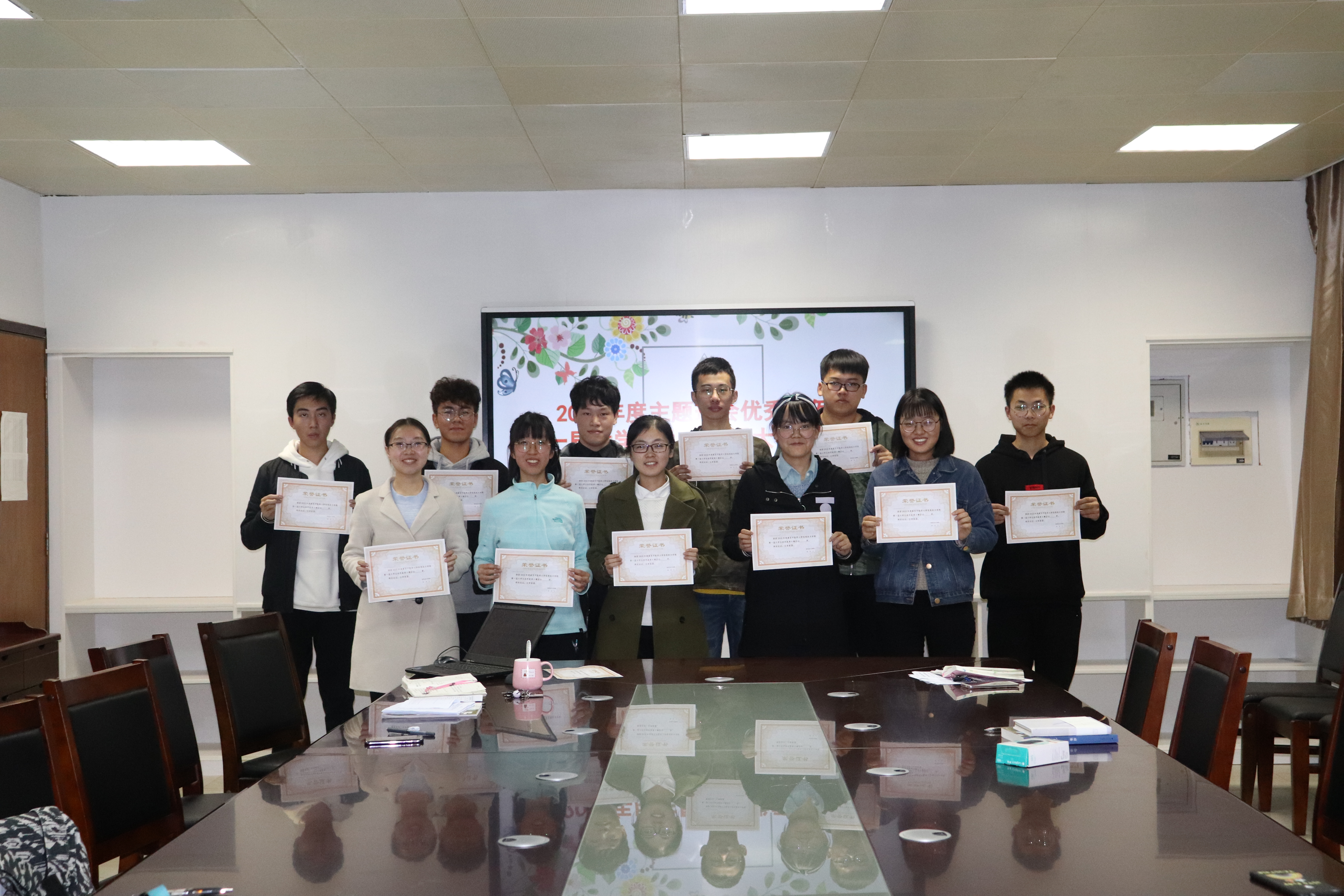 最后,在场所有师生上交选票并由学生代表和老师一起唱票,选出了两个活动的一二三等奖和优秀奖,由沈老师和刘老师颁奖并和学生合影留念。