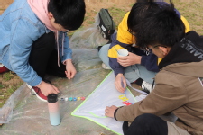 学生会为各个小组准备了绘制风筝的材料,各小组成员自由发挥,将自己的创意及想法描绘在风筝面上。期间,同学们积极思考、团结协作,原本空白的风筝变得五颜六色。作品各具特色,同学们都为自己亲手绘制的风筝而自豪并且十分享受这个过程。各组绘制完成后,评委们开始评分。