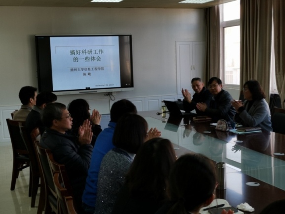扬州大学陈崚教授作了题为“申报国家自然科学基金的一些体会”、“搞好科研工作的一些体会”的专题报告。陈崚教授从自身申报经历着手,回顾了自己整个科研学术生涯,还提及了一些当前值得关注的研究方向;着重从课题选题、立项依据、研究目标、研究方案、特色创新、可行性分析、工作基础等几方面阐述,深入浅出,言简意赅;在谈到做科学研究,要有良好的科学研究态度和能力,尽早确定自己适合的研究方向,积极了解前沿动态,善于发现研究问题,写好学术论文等多方面谈了自己实际体会。