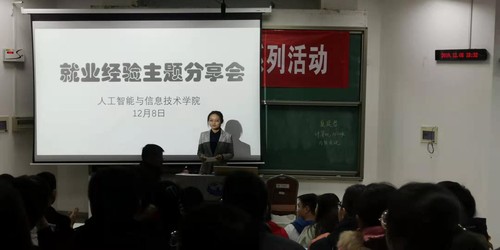 12月8日,人工智能与信息技术学院在 B7-101教室举办就业经验分享系列活动,邀请了夏良哲、沈阳、周洵三位职场中的学长,为大家分享就业经历与经验,帮助同学们少走弯路,让他们在寻找自己理想职位的路上走得更加顺畅。