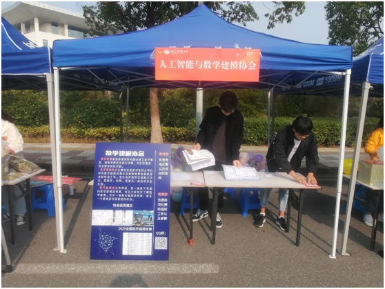 20201017日早上10点,在大学生活动中心举办了社团招新活动,人工智能与数学建模协会也开始招贤纳士,寻找南中医各个学院的数学爱好者们,希望将全校的数学爱好者汇聚一堂,在数学建模协会中不断碰撞出思想上的火花,让每个爱好数学的同学在数学之路上伴而同行。
