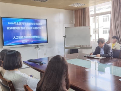 2020112014:30,2020年全国科学道德和学风建设宣讲教育报告会暨宣传月启动仪式》在北京举行。我院20名教师代表、20级研究生在学院会议室(B4-416)集中收看了视频直播,18级和19级研究生在图书馆309会议室收看,未能到场的老师也进行了线上观看。