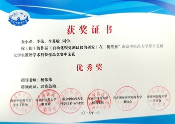 秉持着对传统文化的热爱和新兴科技的向往,2017年夏天,她坚定地选择了南京中医药大学医学信息工程专业学习。她学习勤勉,在校的每一天自习室或者工作室都有她的身影,成绩一直稳定在专业前列,连续三年获得人民奖学金一等奖和校三好学生等荣誉。为了丰富自己的专业知识,2019年她申请并获得了江苏省政府全额奖学金,前往加拿大麦克马斯特大学交流学习。在国外,她认真听课,与外国学生积极交流,最终取得境外交流所有课程满绩点的好成绩,展现了南中医学子良好形象。