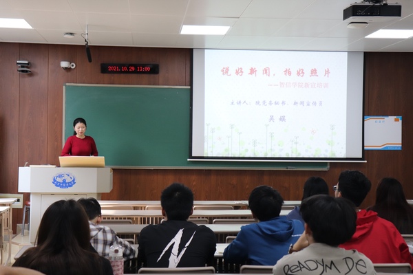 10月29日中午,我院新闻媒体中心在B5-207组织开展新闻宣传专题培训。本次培训会由学院党务秘书、新闻宣传员吴娱老师主讲,新闻媒体中心全体成员参加培训。