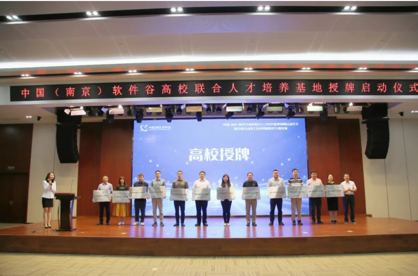 活动现场,南京大学、东南大学、中国科学技术大学、南京航空航天大学、南京理工大学、南京师范大学、南京农业大学、南京邮电大学、南京工业大学、南京信息工程大学、南京中医药大学、南京工程学院等12所高校成为首批共建高校,获得“软件谷高校联合人才培养基地”授牌。