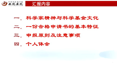 高铸烨主任医师主要从科学家精神与科学基金文化、一份合格申请书的基本特征、申报原则及注意事项及个人体会等4个方面进行了深入浅出的讲解。此外,他还对申报书中的各个模块提出了具体的撰写要求,分析了落选申报书可能存在的问题。高教授认为一份合格的项目申报书应是战略高度和研究深度的有机结合,聚焦国家和社会重大需求,凝练中医药领域科学问题,创新研究内容和方案,字斟句酌、反复修改,形成高质量申报书,才有希望从众多申报者中脱颖而出。最后高教授也预祝老师们在2024年国家自然科学基金申报中取得好成绩。