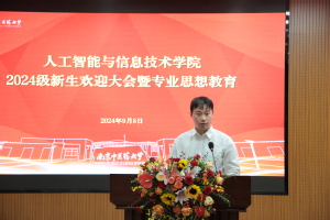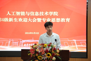 9月8日下午,人工智能与信息技术学院在图书馆102学术报告厅举办2024级新生欢迎大会暨专业思想教育。副校长胡孔法出席会议,学院党总支书记殷明,副院长(主持行政工作)周作建,副书记、副院长李新路,副院长杨涛,学院综合办、教学科研办、学工办老师,学系主任,2024级学业指导老师、辅导员参加会议。热烈欢迎2024级全体本科生和硕博士研究生加入学院。