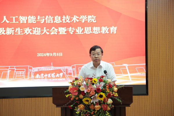 周作建以《做理想坚定担当作为的新时代南中医好青年》为题,为全体新生作专业思想教育。他从新时代扛起新担当、新使命赋予新动力、新征程展现新作为等三个方面入手,深度剖析人工智能发展前景、全面介绍学院发展状况、深情寄语新生。他建议大家要调整心态转变角色,尽快适应大学学习与生活;要热爱专业,追求知识能力和素质的全面发展;学会独立思考、判断、分析能力,学会包容与合作;要树立远大理想和正确的人生观,将个人理想融入时代洪流。周作建表示,同学们生逢盛世,责任重大、使命光荣,要心怀国之大者,抢抓时代机遇、紧握时代红利、勇挑时代大梁。