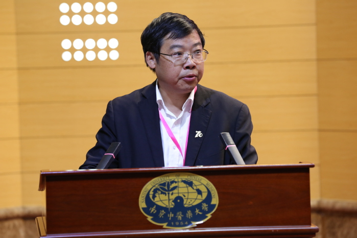 胡孔法代表南京中医药大学致辞。他向出席会议的领导和嘉宾表示感谢,并介绍了南京中医药大学在中医药人工智能交叉融合领域的相关工作。他表示,中医药与人工智能的深度结合将为中医药学的发展带来全新的机遇与挑战,希望与会专家学者能够抢抓风口机遇加强交流合作,共同推动人工智能在中医药领域的创新应用和成果转化,为中医药的传承创新发展贡献力量。