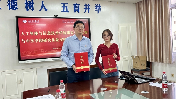 为进一步拓宽人工智能与信息技术学院研究生党支部服务学生全面发展的有效渠道,不断推动支部党建科研的融合创新发展,11月12日下午,人工智能与信息技术学院研究生党支部与中医学院研究生党支部举办党建共建签约仪式。人工智能与信息技术学院研究生党支部书记周璐、中医学院研究生党支部书记周诗涵以及两支部党员参加。人工智能与信息技术学院研究生党支部组织委员徐安迎主持。