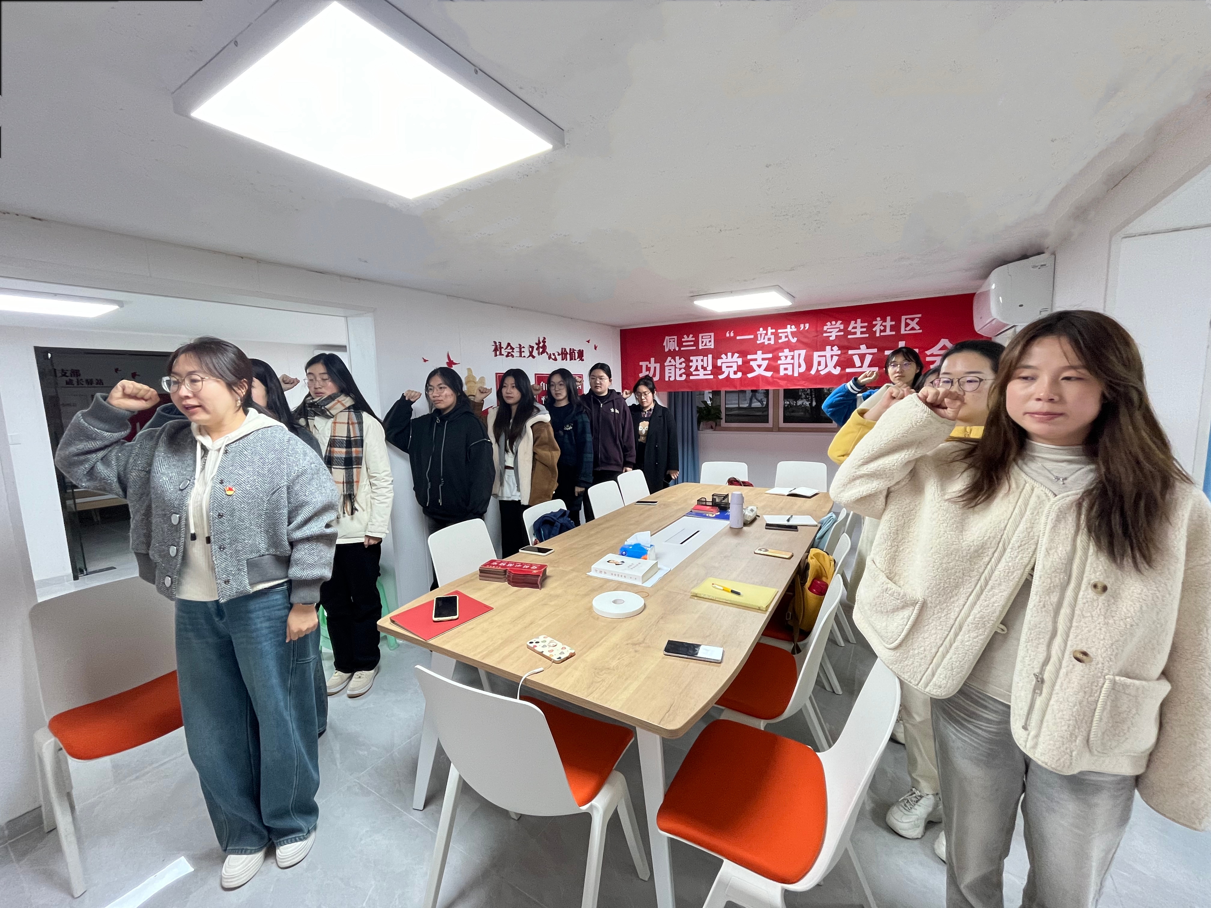 为推动基层党组织建设,凝聚党建合力,实现资源共享,探索“一站式+党建”思政育人新模式,11月19日,人工智能与信息技术学院和第一临床医学院在佩兰园“一站式”学生社区(以下简称“佩兰社区”)召开功能型党支部成立大会。人工智能与信息技术学院副书记、副院长,佩兰社区党支部书记李新路,第一临床医学院辅导员张心钊、佩兰社区党支部副书记,人工智能与信息技术学院辅导员、佩兰社区党支部副书记朱梦婷以及相关学生党员参加会议。会议由朱梦婷主持。