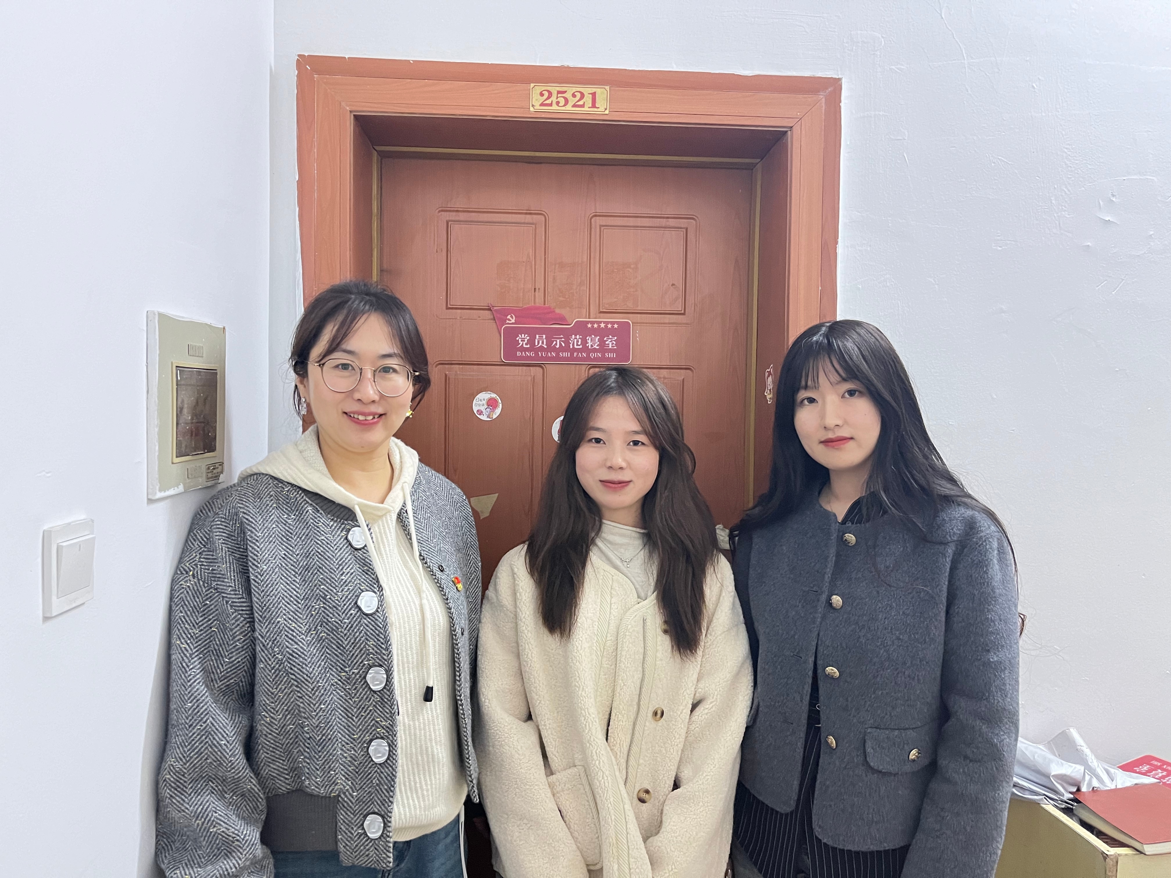 会后,李新路一行走入学生宿舍,为佩兰社区功能型党支部学生党员宿舍挂牌。
