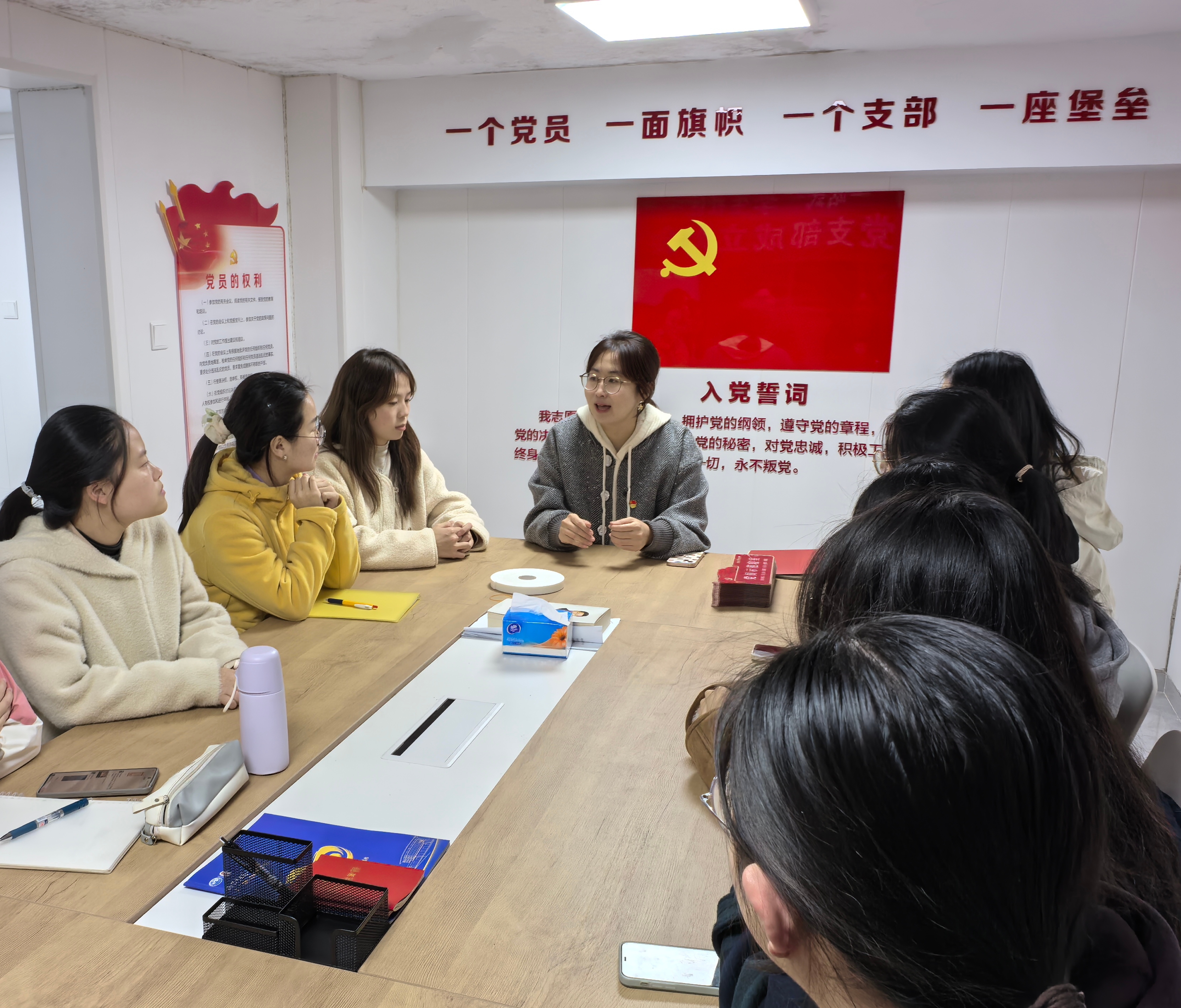 李新路为党支部党员讲授专题党课。她指出,“一站式”学生社区是通过一站式集成、网格化管理、精细化服务、信息化支撑的综合管理模式,旨在将学生社区打造为学生党建前沿阵地、“三全育人”实践园地、智慧服务创新基地和平安校园样板高地,将高校育人力量和资源整体下沉到学生社区,用最温暖的关爱陪伴学生健康成长。