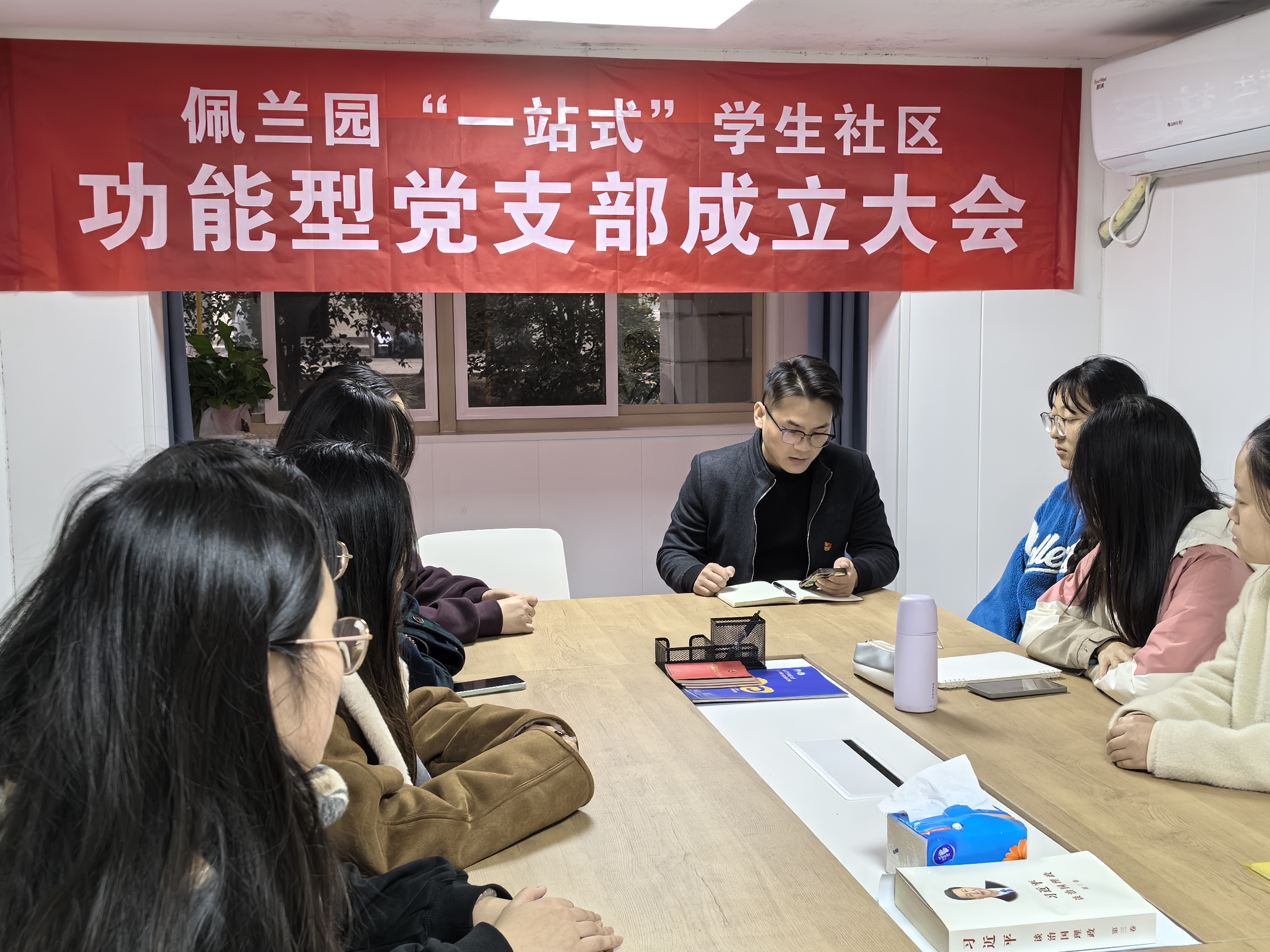 张心钊宣读了《关于成立佩兰园“一站式”学生社区功能型党支部的通知》,并介绍功能型党支部建设的具体安排。