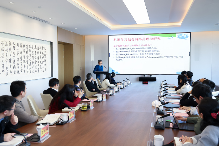周作建和胡晨骏分别作了题为《中药大模型研究方案》、《中医药网络药理学研究》的报告。