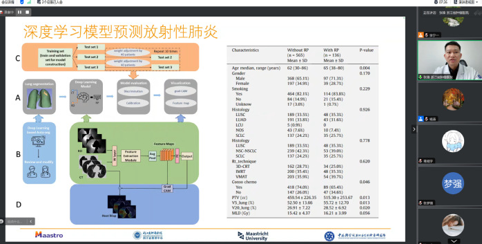 张臻从Radiomics和深度学习在放射性肺炎预测中的价值、人工智能在肺癌预后预测中的价值、需克服问题及未来方向三个方面介绍了所属科研团队的研究情况。