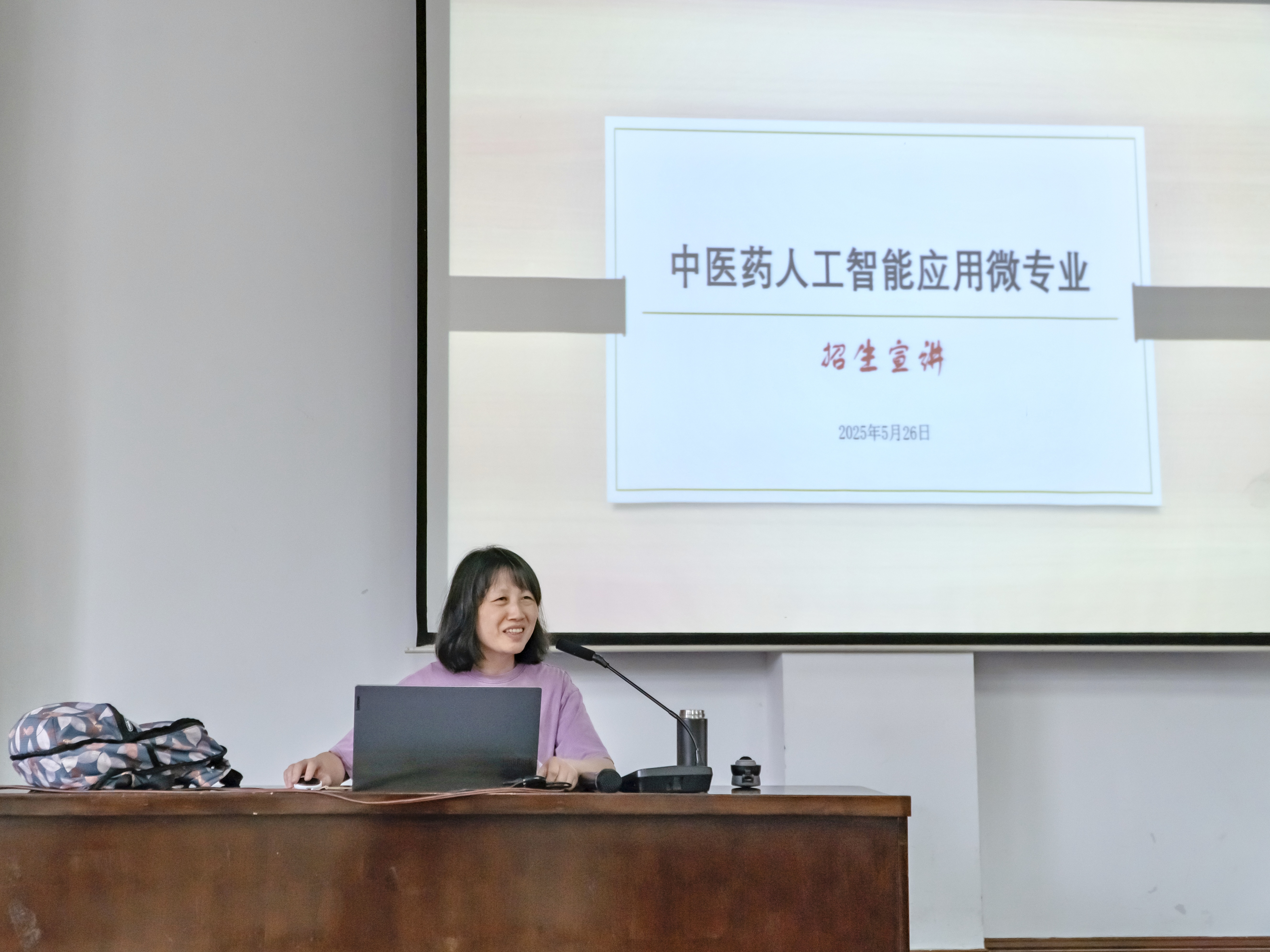 活动伊始,龚庆悦以“为什么要学人工智能”这一引人深思的话题切入。她指出,在人工智能技术飞速发展的当下,其与医疗健康领域的深度融合,已然成为推动中医药现代化进程的关键动力。尤其是在中医诊断智能化、中药研发加速化等方面,人工智能展现出了巨大的发展潜力,借此着重强调了学习该微专业的重要意义。