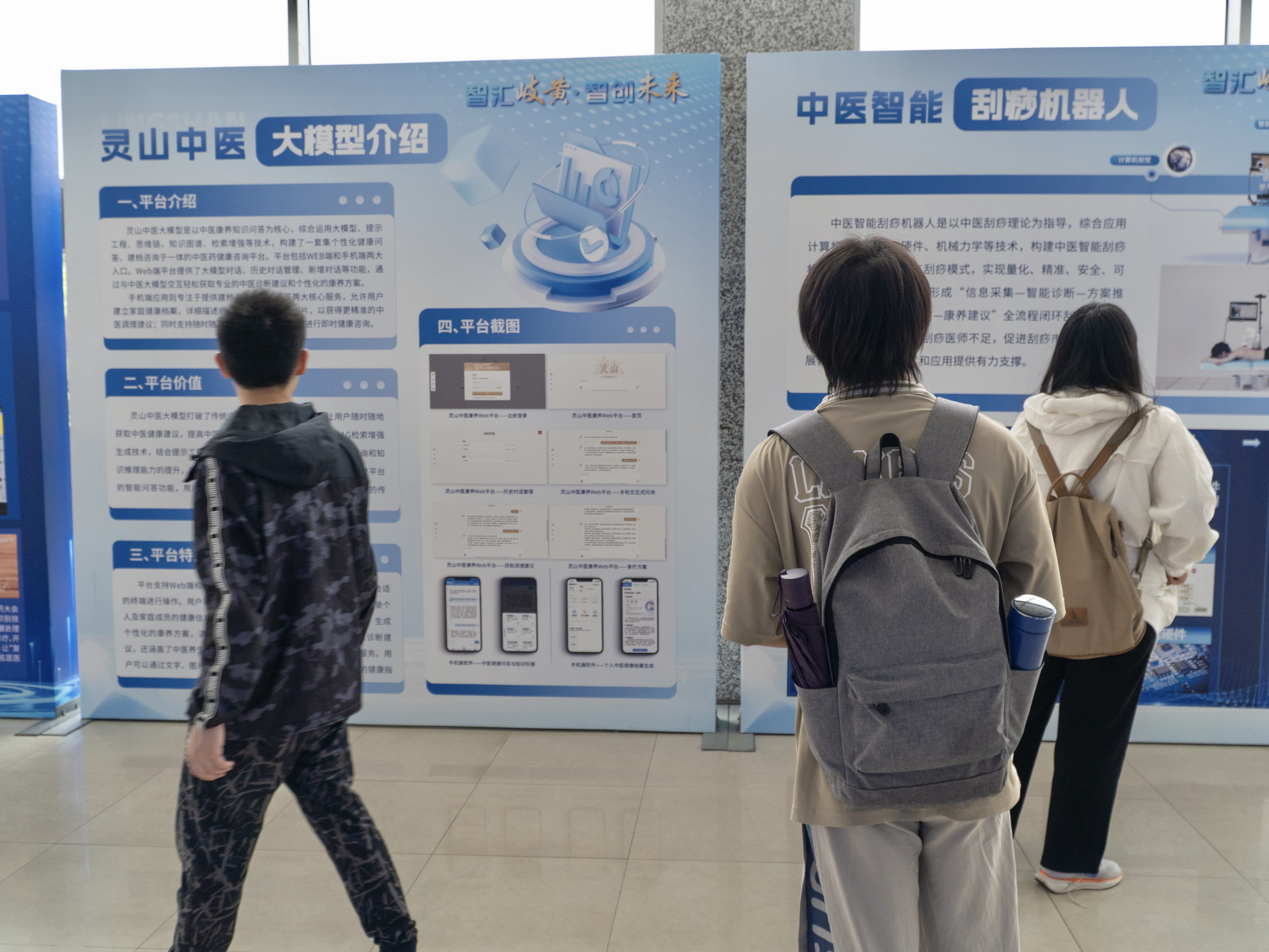 会后,同学们参观了2025年度南京中医药大学基层工会服务教职工创新创优项目优秀项目“智汇岐黄·智创未来”‘人工智能+中医药’主题展。