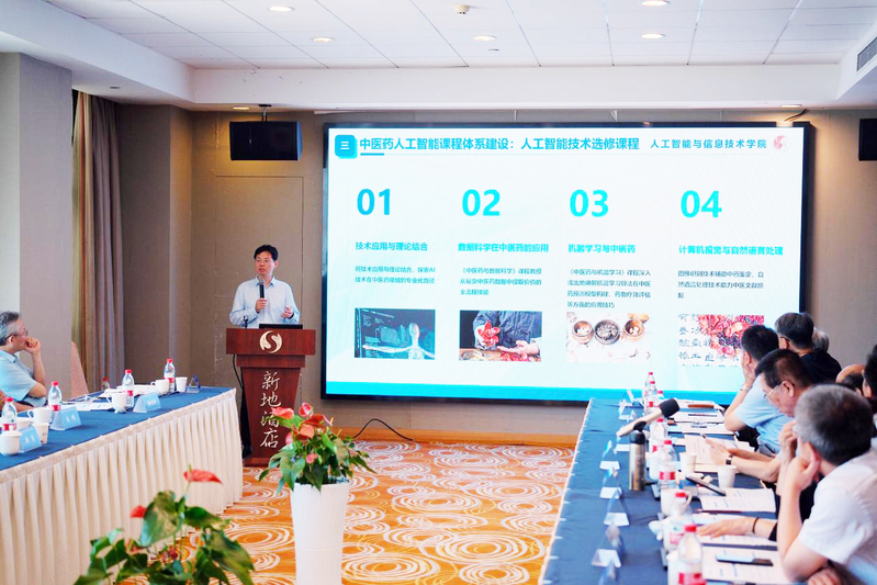 项目负责人顾宁院士对项目进行了全面介绍;项目子课题负责人、北京大学教授韩鸿宾围绕“AI与传统中医研究范式转型”作详细阐述;项目子课题负责人、北京工业大学教授卓力探讨了中医药大模型研究的进展与挑战;项目研究骨干、南京中医药大学教授周作建以“中医药人工智能专业教育”为题,作专题分享。