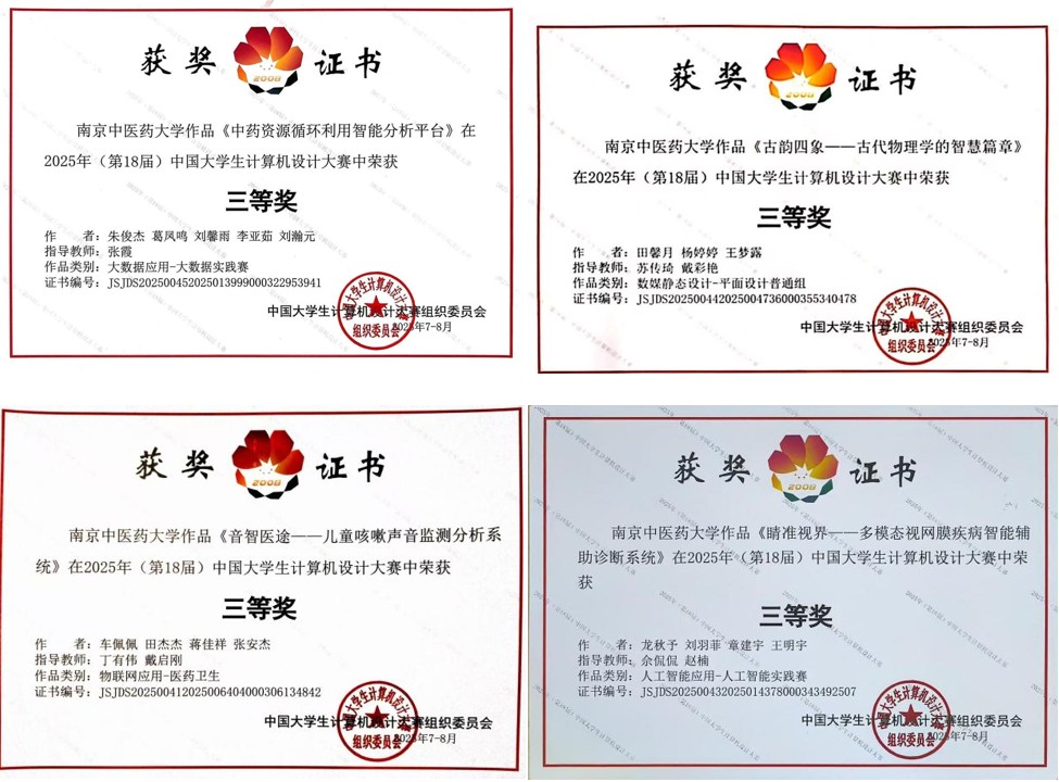 2025年7至8月,第18届中国大学生计算机设计大赛国赛分时段在全国5个赛区举行,我校荣获4个二等奖和4个三等奖。
